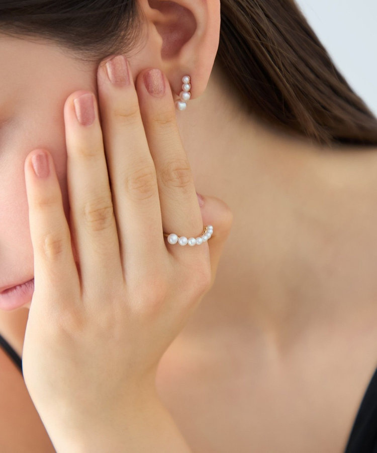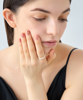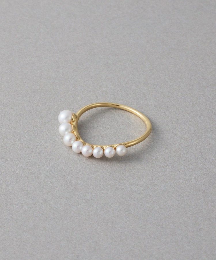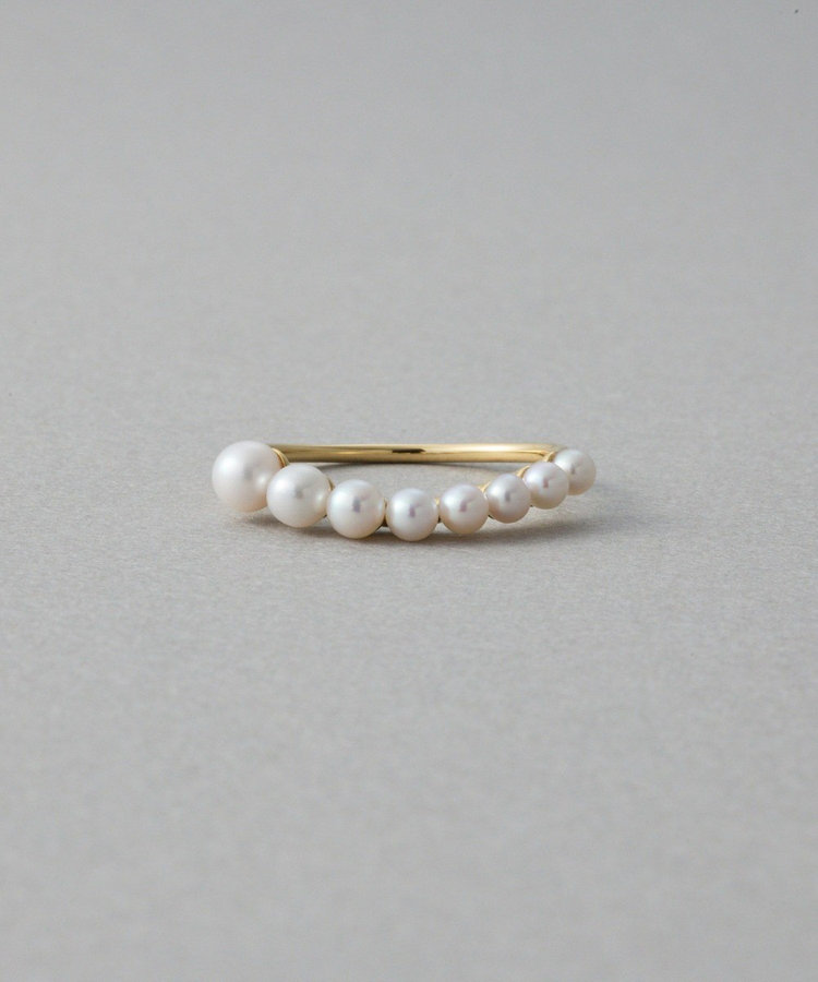 グラデーションにセッティングしたパールが、優美なラインを描くリング。