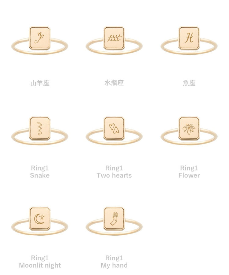 ete bijouxのために描き下ろされたイニシャル・数字・星座・イラストを刻印していただけます。