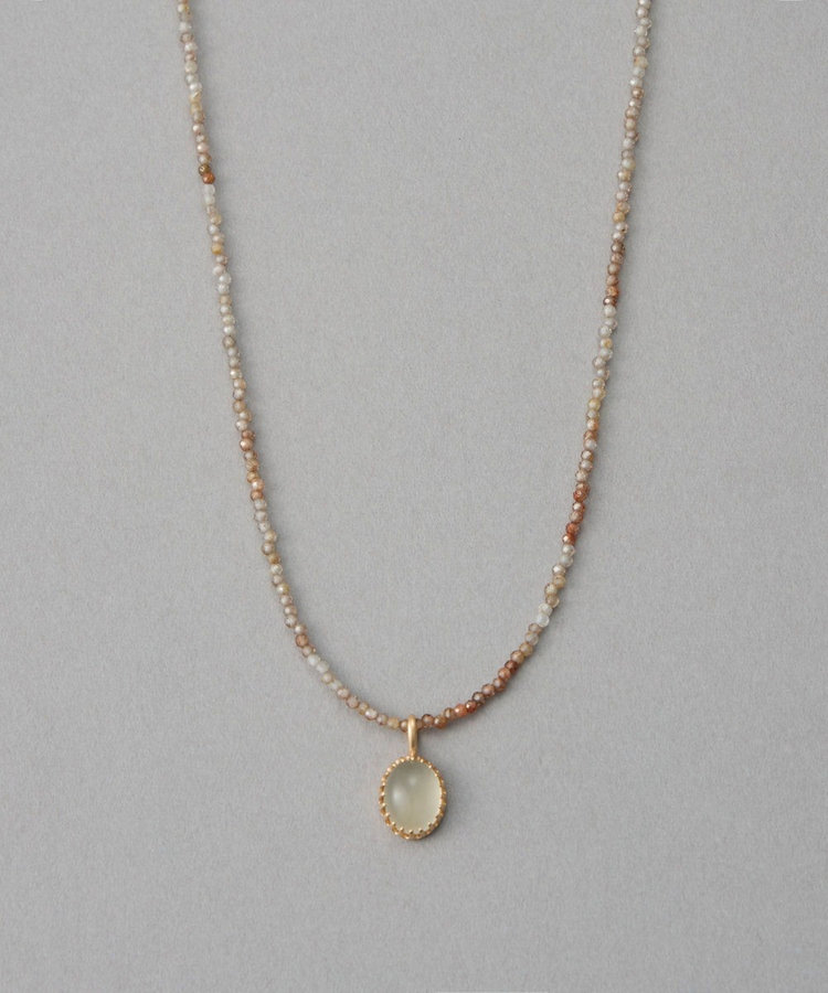 肌なじみの良いワームトーンのマルチストーンを合わせて、カジュアルなスタイリングにもフィットする仕上がりに。