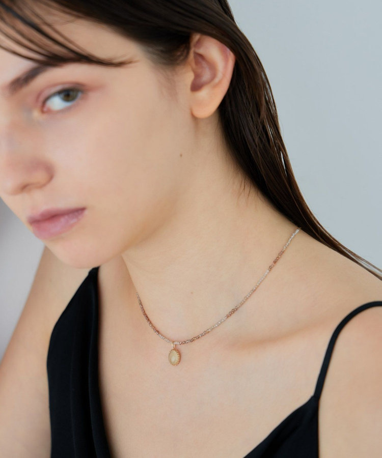 スライド仕様で長さを調整できるので、チョーカーとして着けるのもおすすめ。