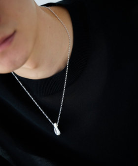 ぽってりと丸みを帯びたフォルムに、シャープなラインが映えるようアウトラインにこだわったネックレス。