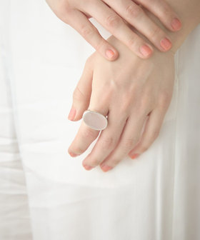 クリアな質感とそぎ落とされたシンプルな造形で、ボリュームがありながらも軽やかに身に着けられるジュエリーです。