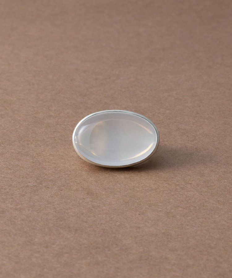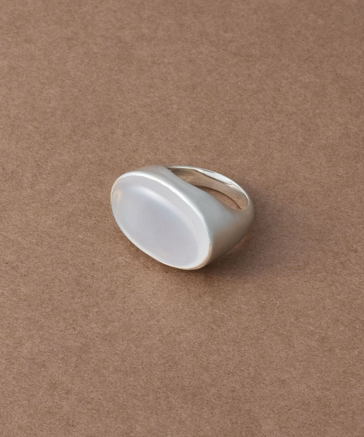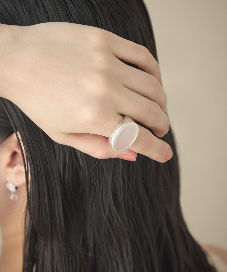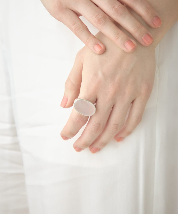 なめらかに削り出されたミルキークォーツが、肌に自然に溶け込むリング。