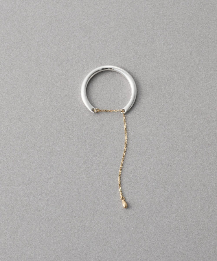 K10ゴールドのチェーンとモチーフが、スタイリングに軽やかさを添えるリング。