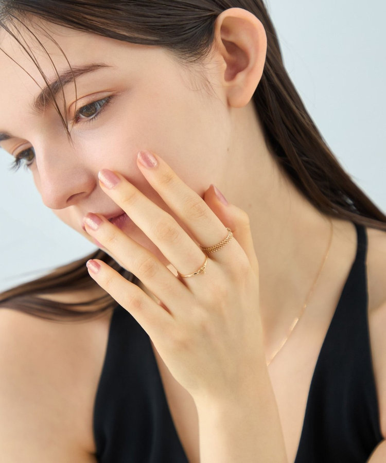 透け感のある造形で、存在感がありながらも日常使いしやすい仕上がりのリングです。