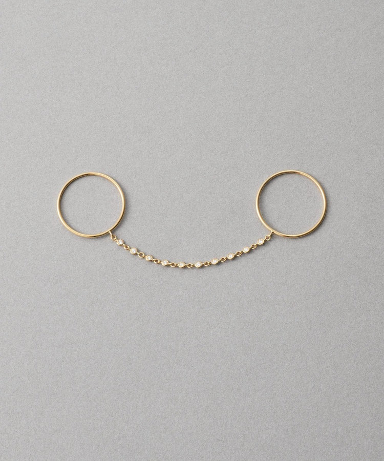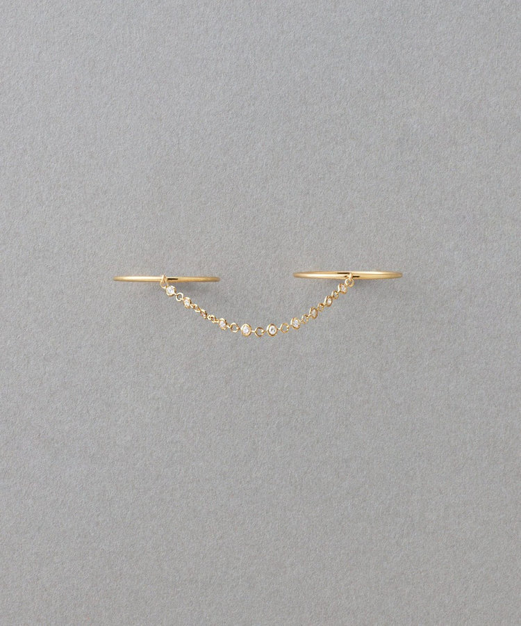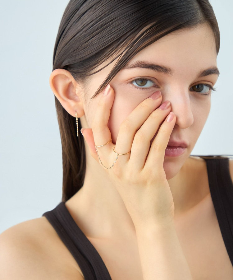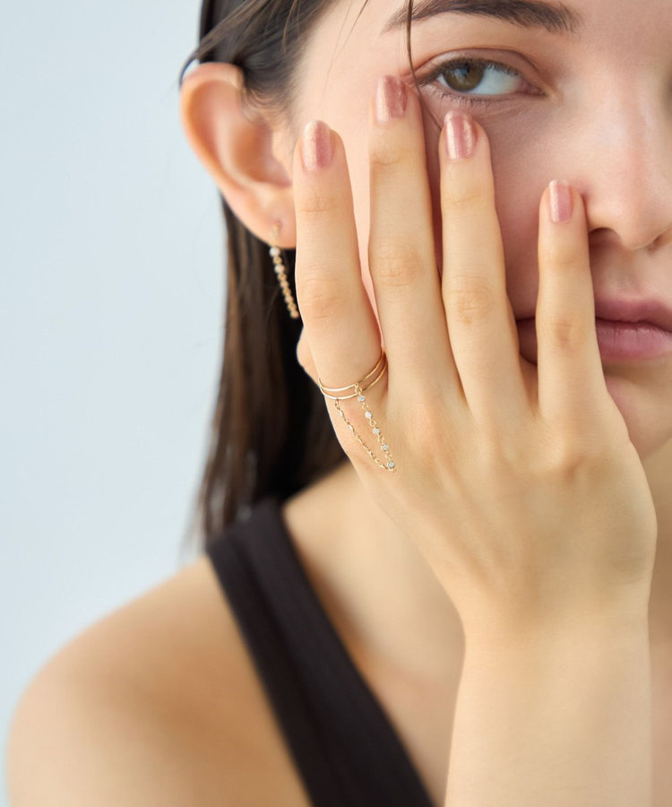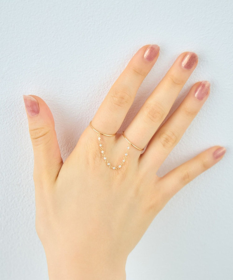 同じ指に重ねたり、隣り合う指や、薬指と人差し指にチェーンを連ねて。