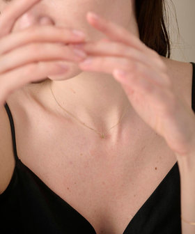 さりげないサイズ感ながら華やかな印象で、オフィスでもお使いいただける上品なネックレスです。
