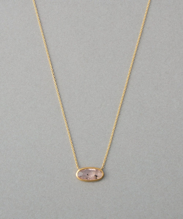 咲き初めのバラのように、淡いピンク色で肌の血色感を高めてくれるローズクォーツのリング。