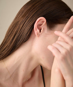 さりげないサイズ感ながら華やかな印象で、オフィスでもお使いいただける上品なピアスです。