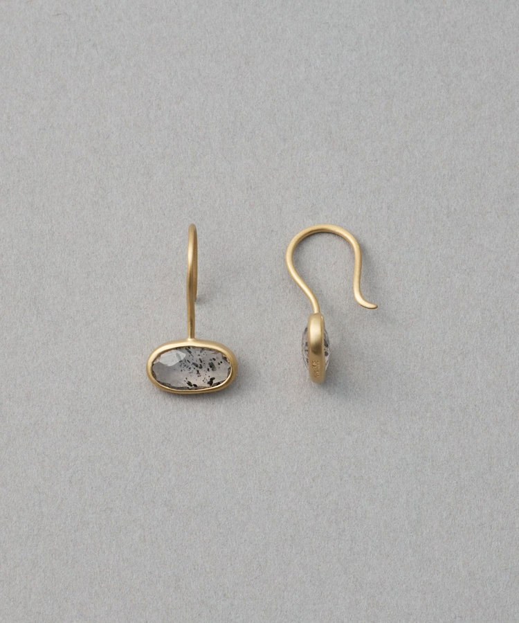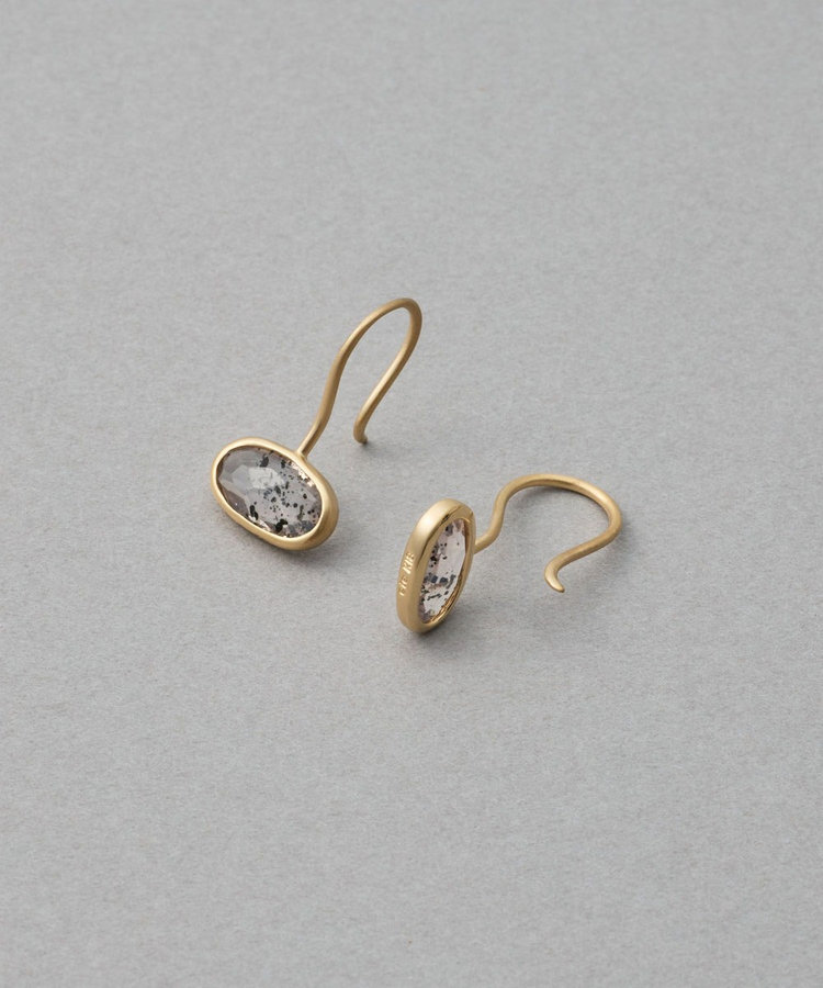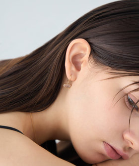咲き初めのバラのように、淡いピンク色で肌の血色感を高めてくれるローズクォーツのピアス。