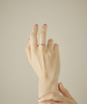 小さなマーキスカットのマラヤガーネットを、贅沢にあしらったリング。