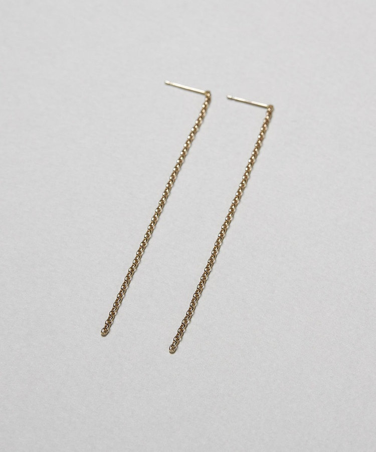 繊細ながら、一本の線を引くように凛とした佇まいを見せるチェーンのピアス。