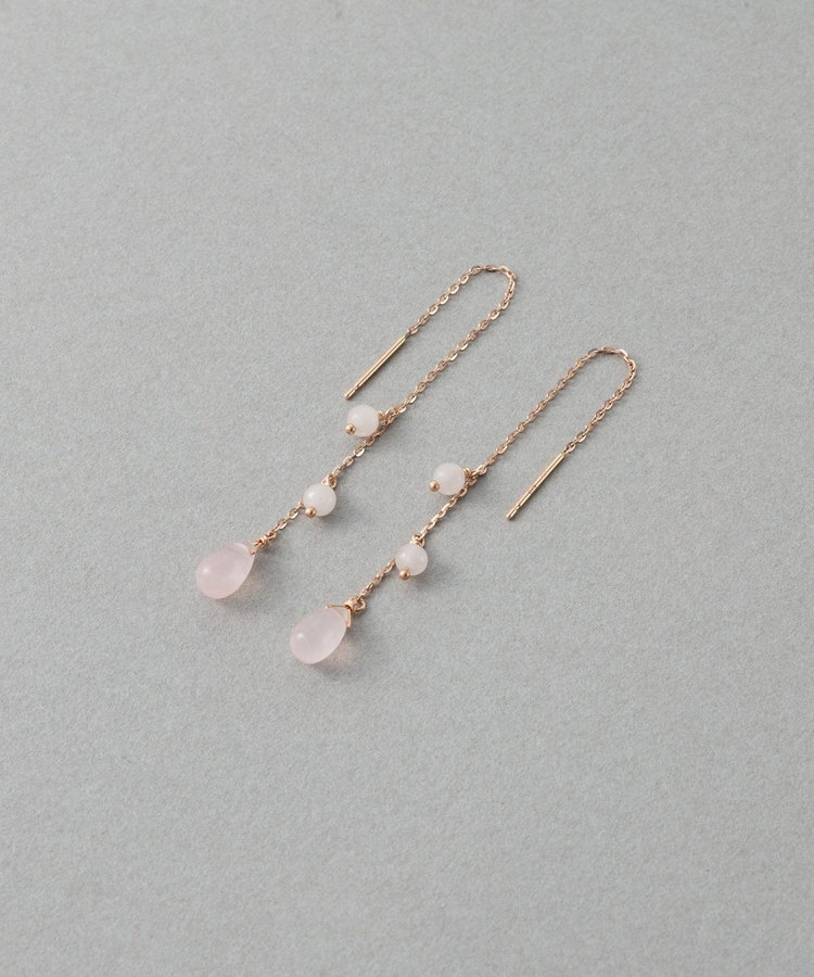 ローズクォーツ, チェーン:K10ミストピンクゴールド(ニッケルフリー), その他パーツ・ポスト:K10ピンクゴールド(ニッケルフリー), キャッチ:シリコン