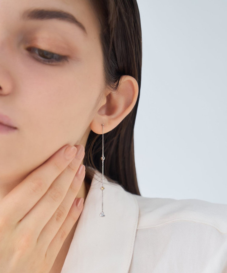 プラチナム:SV925+プラチナコーティング(ニッケルフリー), キュービックジルコニア(スピネル, ミディアムシャンパン, ホワイト), ポスト:K18イエローゴールド+プラチナコーティング(ニッケルフリー), キャッチ:シリコン/ イエローゴールド:SV925+イエローゴールドコーティング(ニッケルフリー), キュービックジルコニア(ライトシャンパン), ポスト:K18イエローゴールド+イエローゴールドコーティング(ニッケルフリー), キャッチ:シリコン