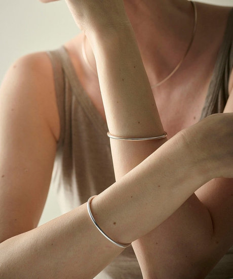 2025.02.08 "Re-grow" Collection -Bangle- 型を製作する際に生まれる石膏の廃棄をなくせるよう、線材でつくられたバングル。カジュアルなイメージのある線材ですが、太さやフォルムの検証を重ね、奥行きのある表情と滑らかなきらめきを持つ仕上がりを実現。リュクスで大人な雰囲気にアップデートしました。膨らみをもたせたシルエットが、肌に優しくなじみます。 リグロウ ミディアム バングル ¥25,300 リグロウ シン バングル ¥18,700 リグロウ ミディアム バングル ¥25,300 リグロウ シン バングル ¥18,700